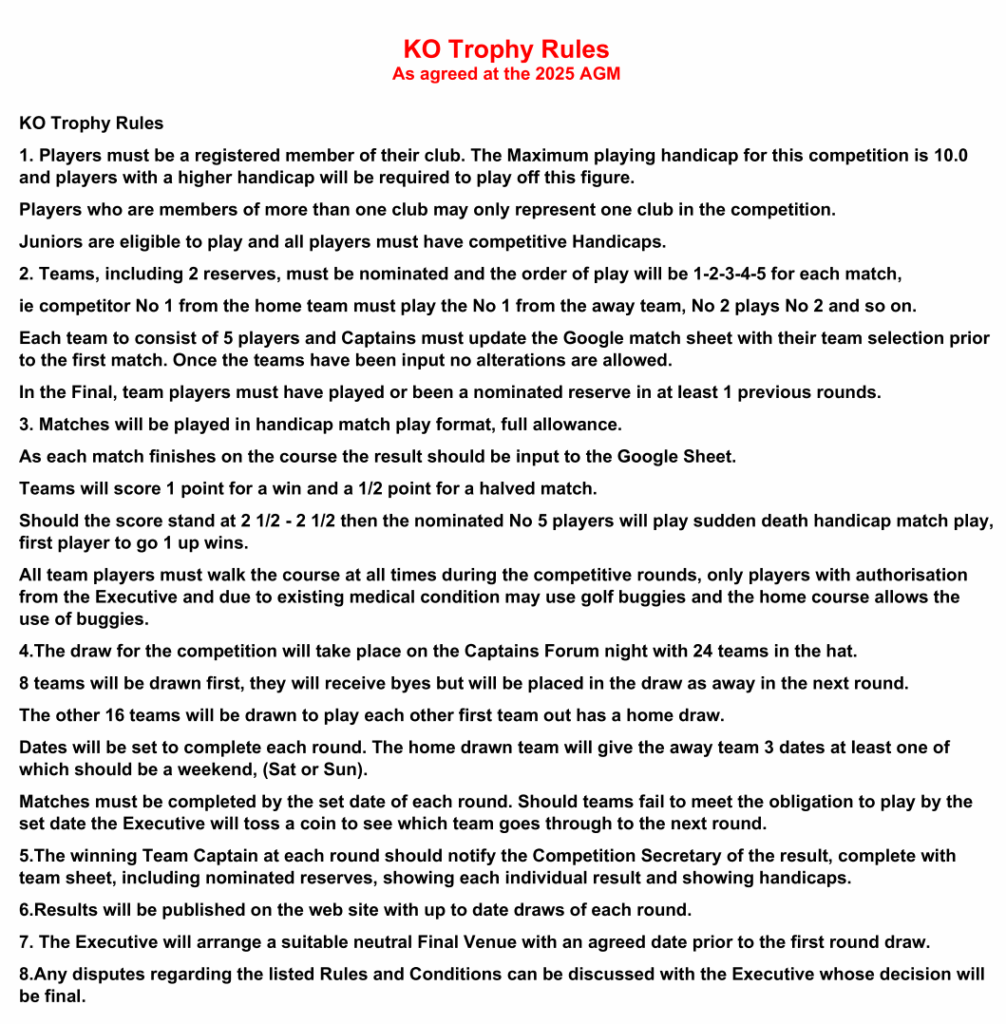 LEAGUE KNOCK OUT TROPHY RULES